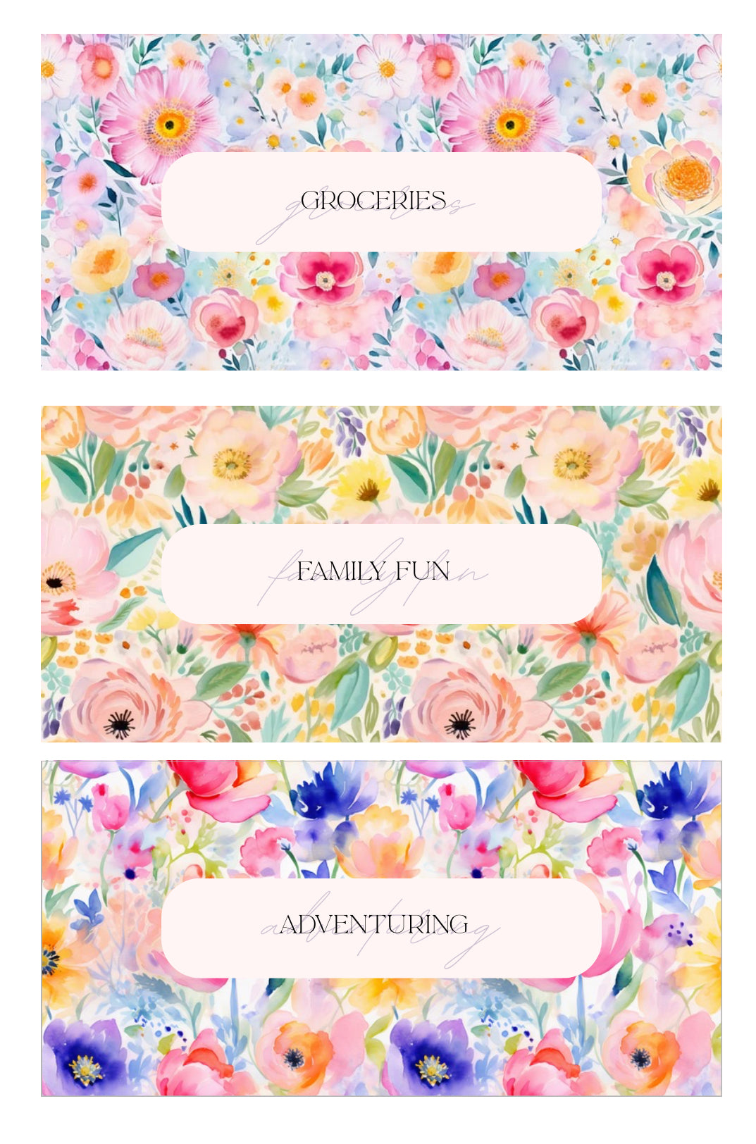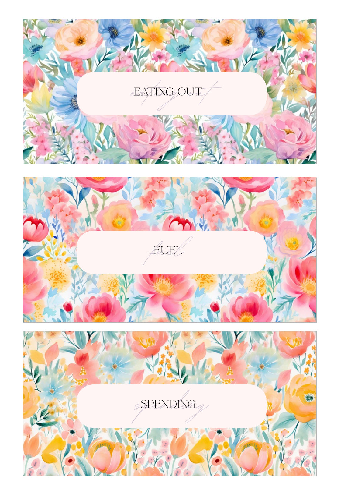 please leave a note at checkout with your categories for the 6 envelopes.